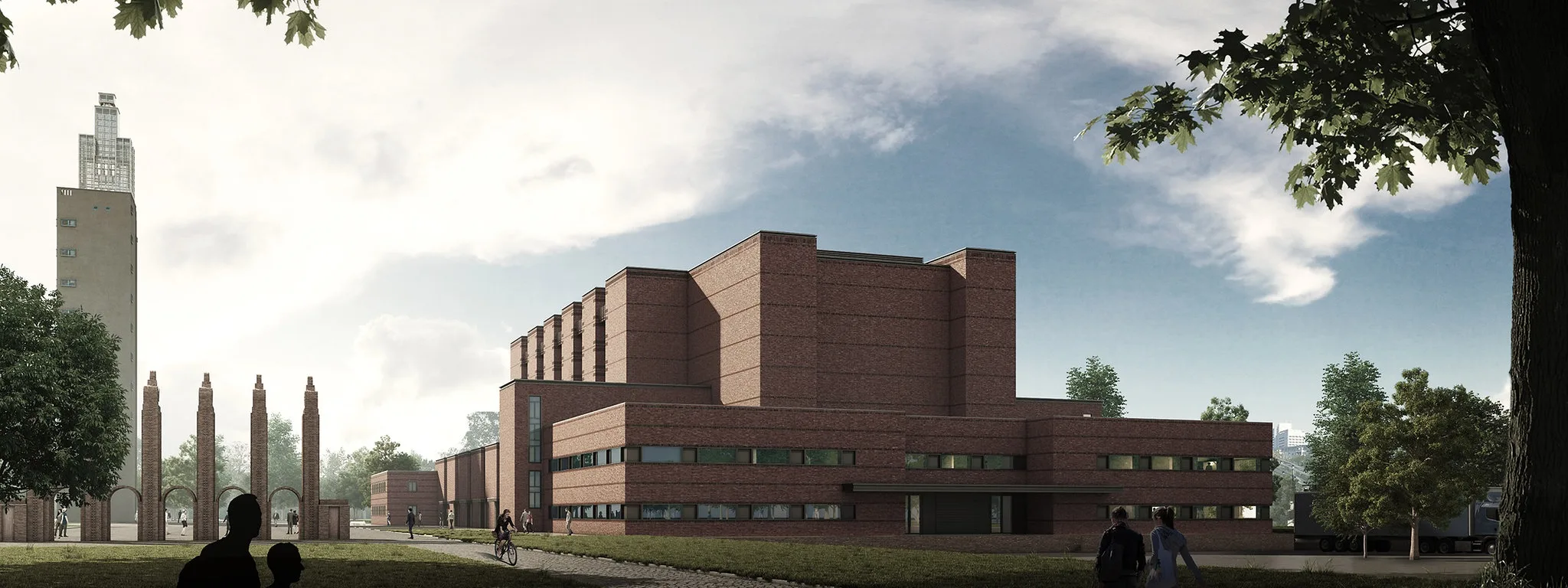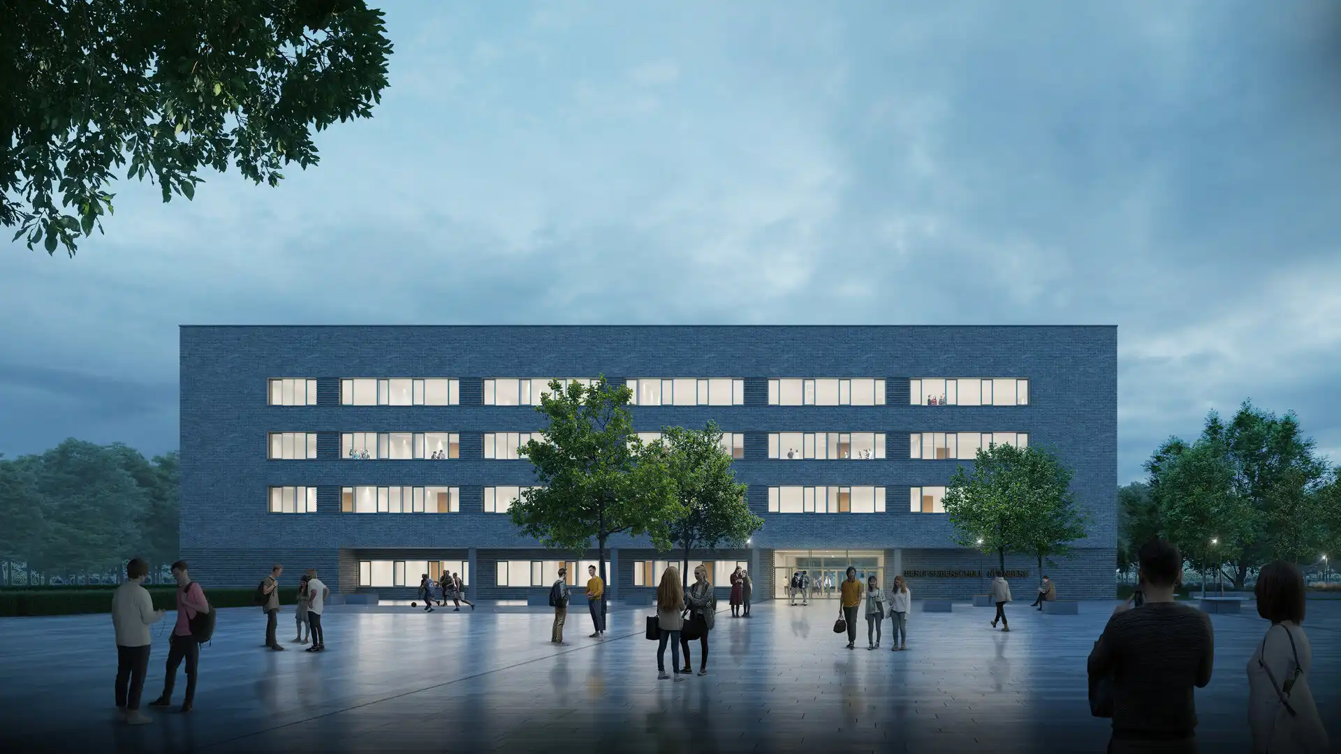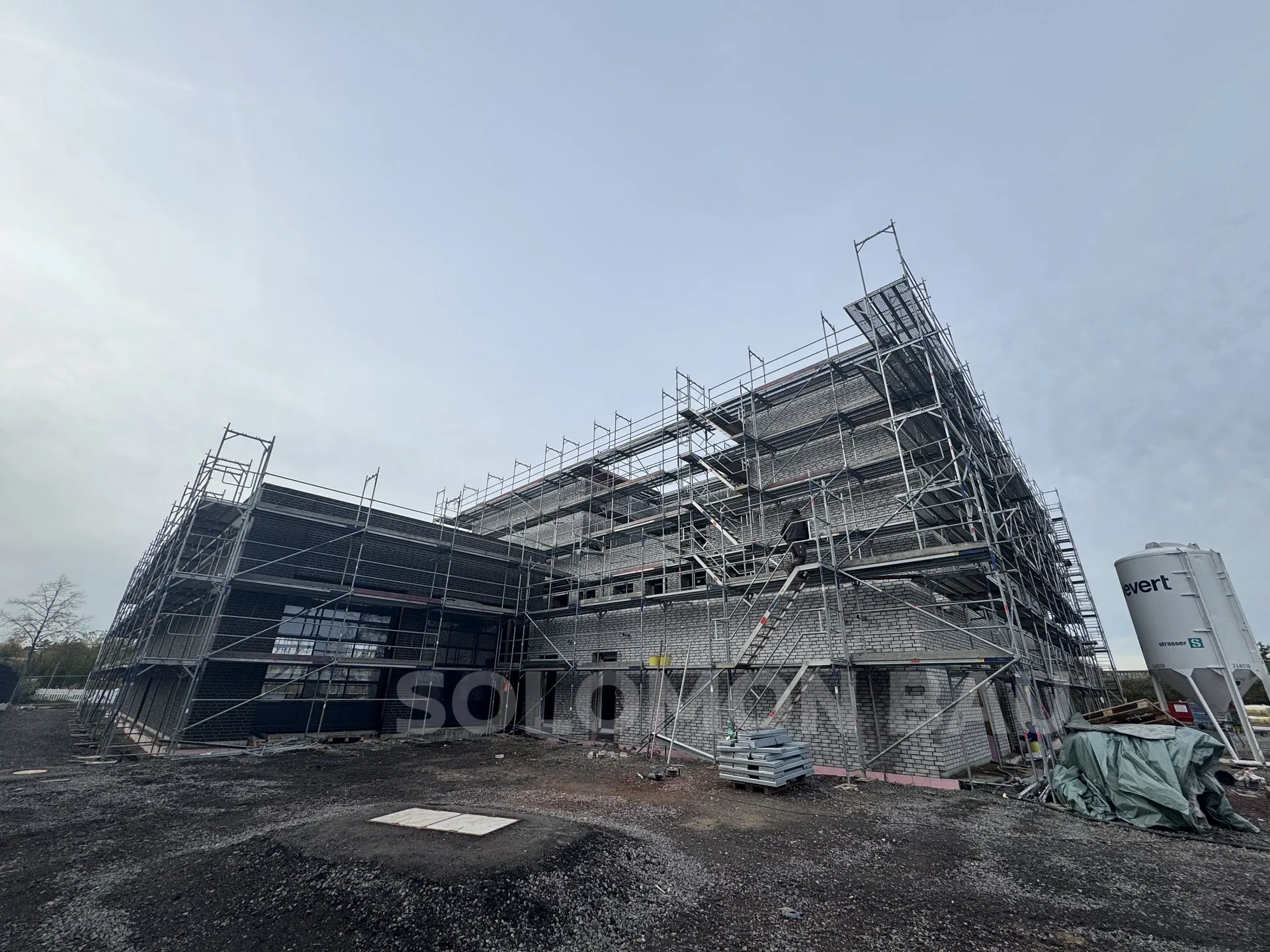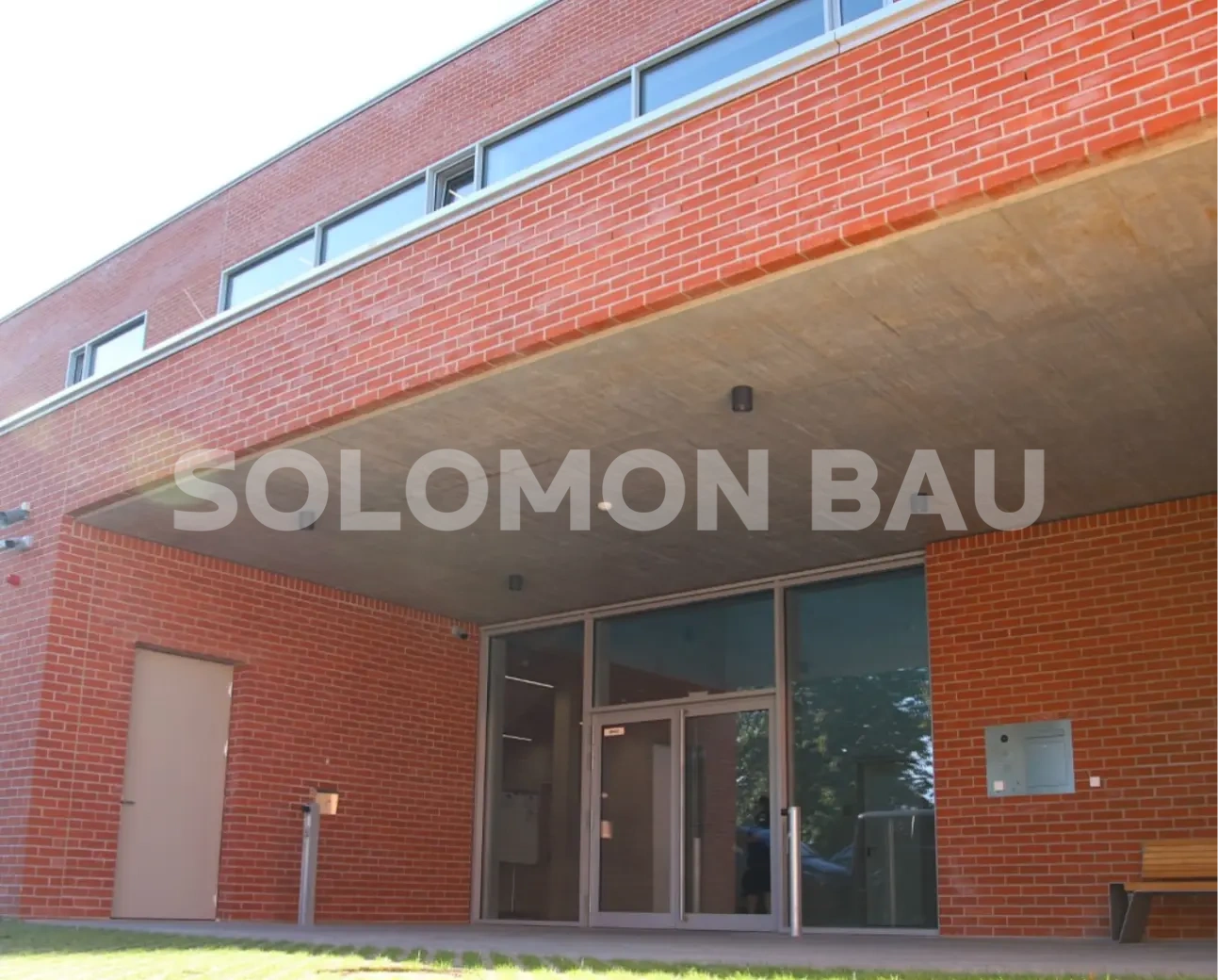 Neubau eines Schulgebäudes mit hochwertiger, handwerklich anspruchsvoller Klinkerfassade. Ausführung der Klinkerarbeiten mit alten, gebrannten handgeformten Steinen im Sonderformat, 0,5 cm zurückgesetzten Fugen sowie inklusive Einbau von Konsolen. Quelle