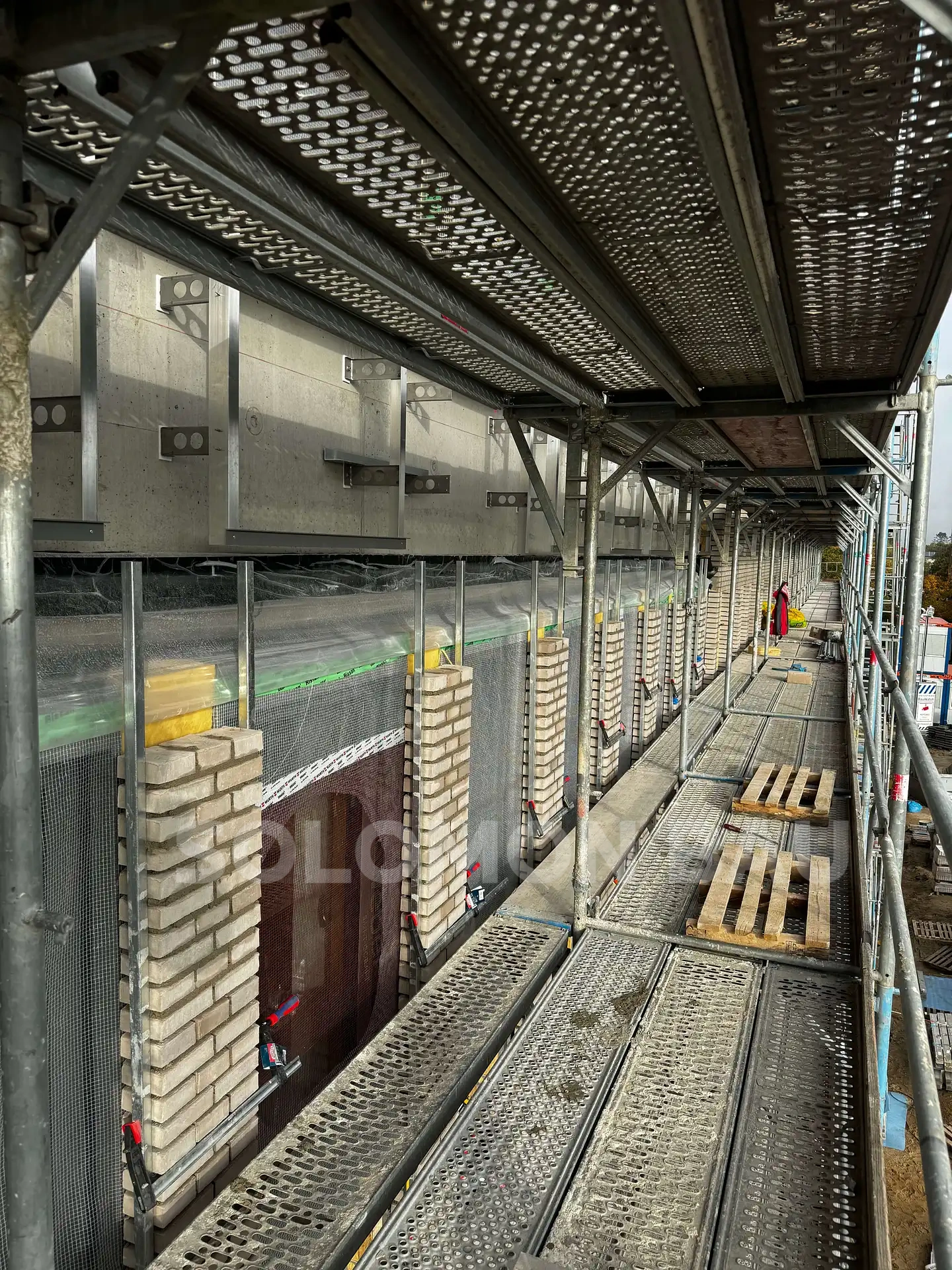 Für die Mensa der Riedseeschule in Stuttgart haben wir die Klinkerfassade realisiert und sie an Konsolensysteme für die grüne Fassade angepasst. Zusätzlich wurden auch Elemente wie die Lochfassade umgesetzt, um eine funktionale und ästhetische Gestaltung zu erreichen.