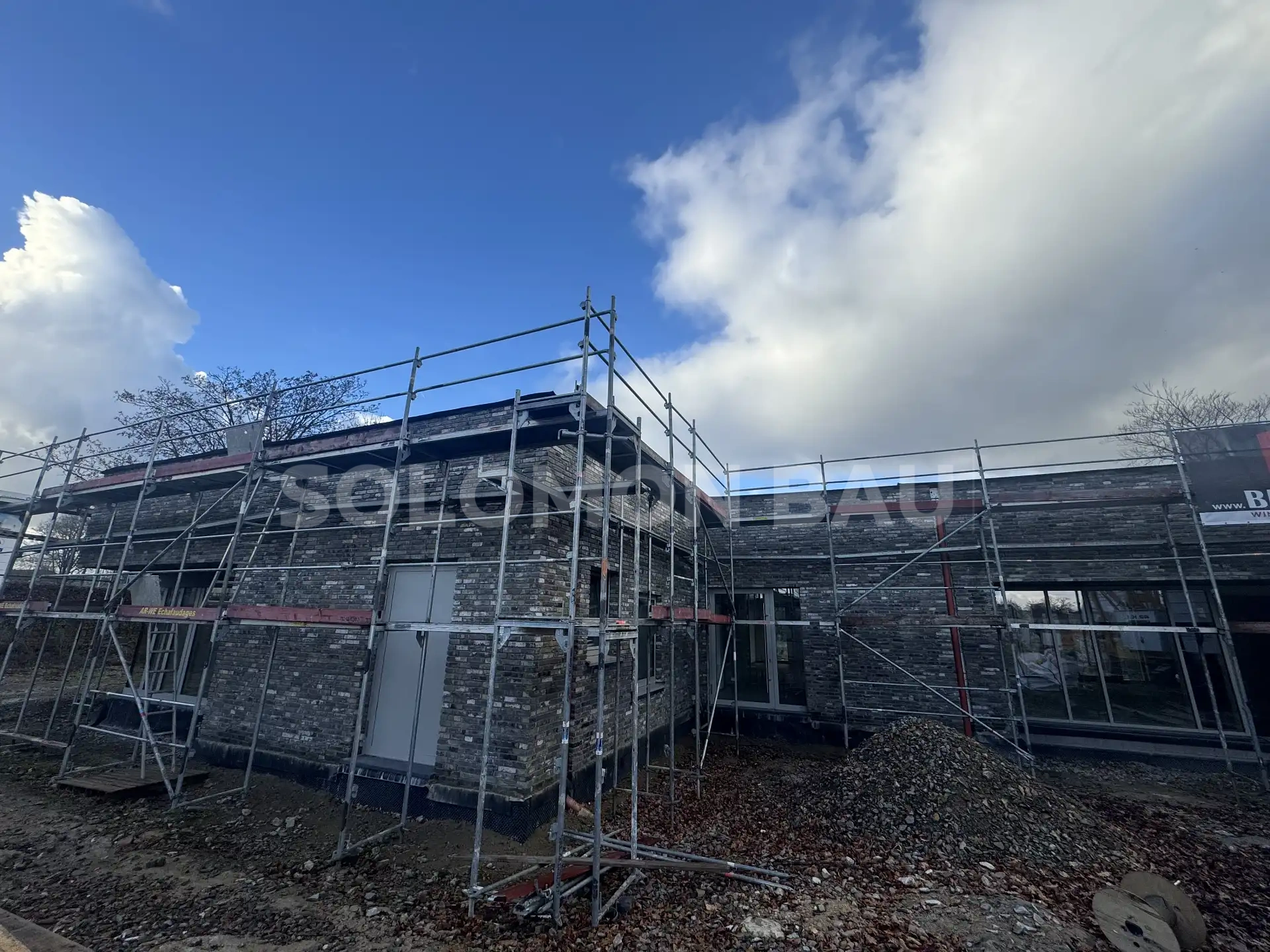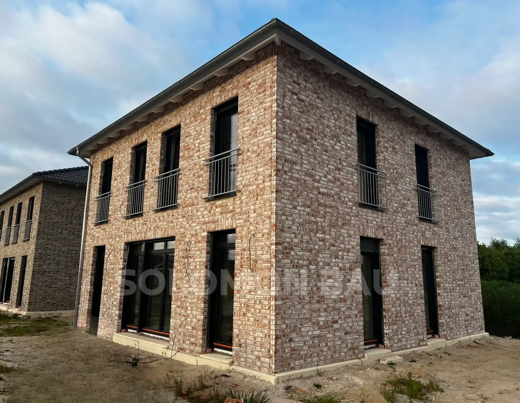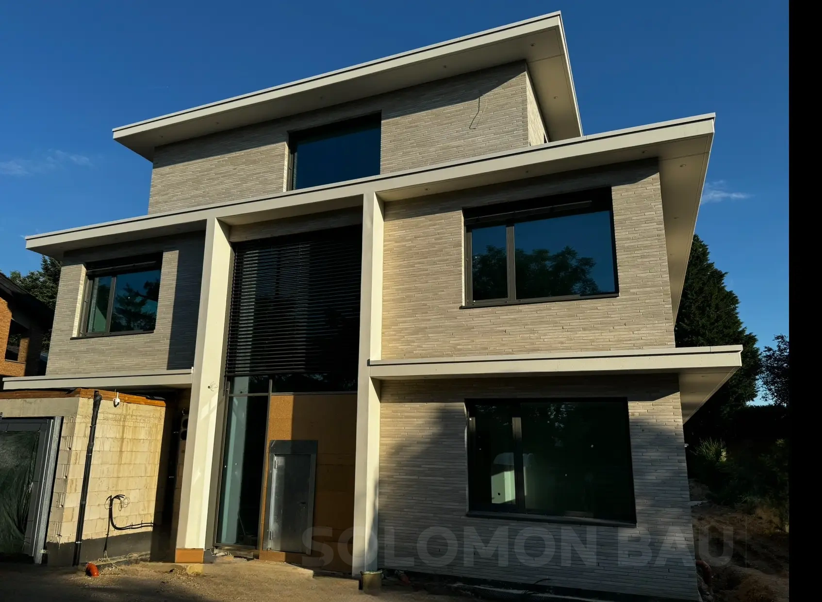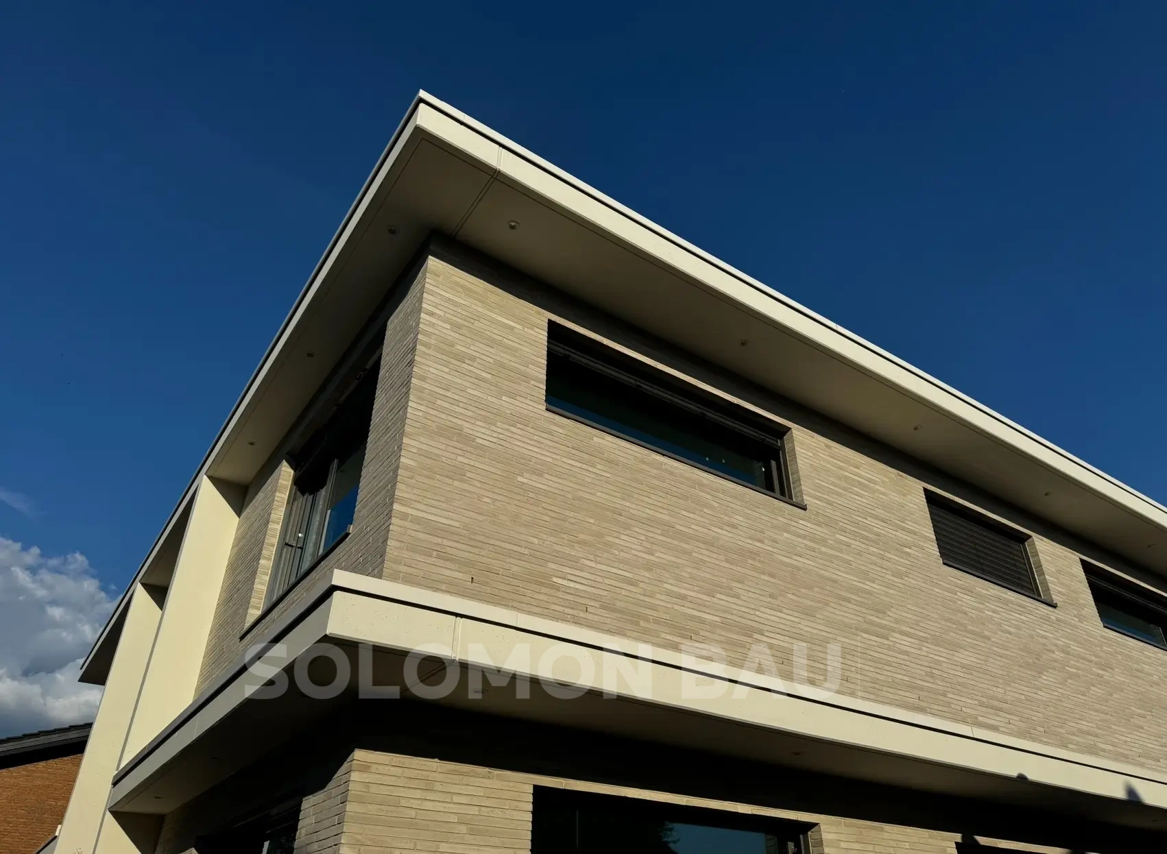 Nahe Köln entstand ein luxuriöses Privathaus, dessen Fassade mit langen Dünnformat-Klinkersteinen gestaltet wurde. Die Verarbeitung dieser langen Steine erfordert besonders viel Präzision und Professionalität. Die Arbeiten beinhalteten die Verwendung von Konsolensystemen, fertigen Stürzen und die Anpassung an unterschiedliche Betonhöhen, um ein perfektes Ergebnis zu erzielen.