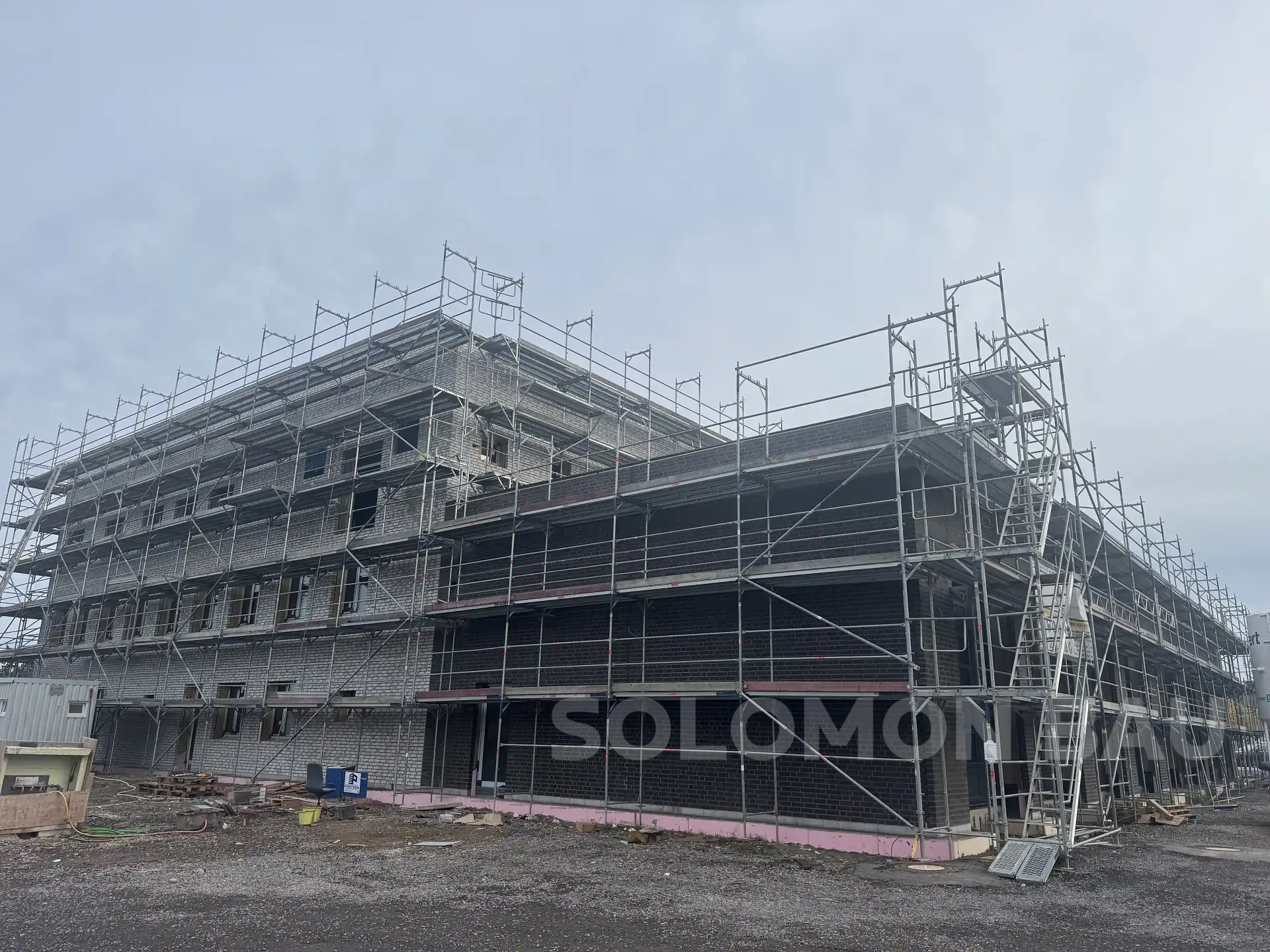 Für das Mehrfamilienhaus in Bocholt haben wir die Arbeiten mit roten NF-Steinen ausgeführt. Das Projekt wurde in zwei Etappen realisiert: Zuerst wurde die Hälfte des Gebäudes fertiggestellt, danach folgte der Rest. Zum Schluss wurde noch ein weiteres Haus im Innenhof errichtet.
