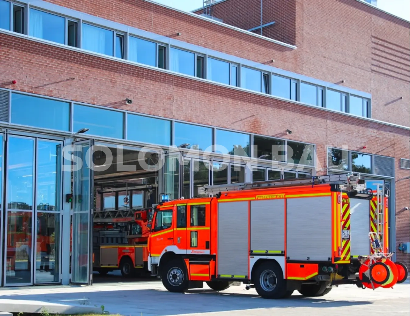 Die Feuer- und Rettungswache Nord in Kiel-Holtenau ist ein modernes Zentrum für Brand- und Rettungsdienste, das durch seine innovative Architektur hervorsticht. Bei der Gestaltung der Fassade kamen zahlreiche komplexe 3D-Formen, Konsolensysteme und andere anspruchsvolle Elemente zum Einsatz, die von unserem Team mit Präzision und Fachwissen umgesetzt wurden.